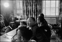USA. Alabama, Montgomery. Martin Luther KING Jr. talks to the...