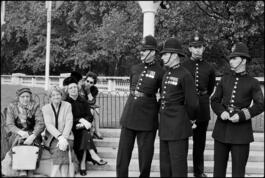 GB. England. London. 1960. Girl with kitten and couple looking...