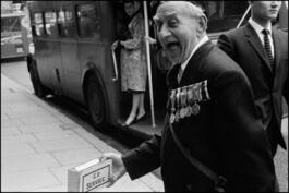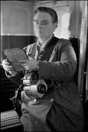UK. London. 1960. Bus conductor woman with ticket machine.