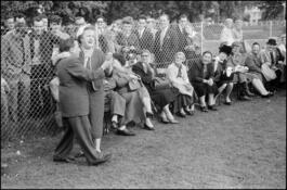 UK. London. 1960. Outdoor crowd with couple dancing.