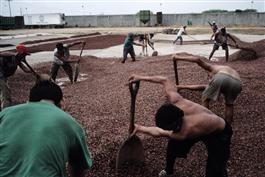 ECUADOR. Near Duran. 2002. Drying cacao at the Cofina export...