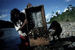 ECUADOR. Along the River Napo. 2002. Panning for gold. This is...