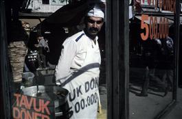 TURKEY. Istanbul. 2001. Kebab salesman in the Old City.