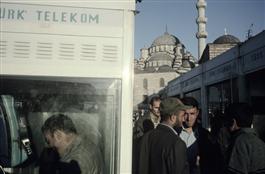 TURKEY. Istanbul. 2001. Telephone booths with the New Mosque...