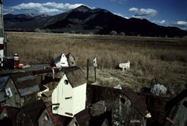 USA. Outside Taos, New Mexico. 2001. Birdhouses for sale.