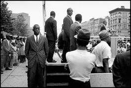 On May 25, 1961, Bruce Davidson joined a group of Freedom Riders traveling by bus from Montgomery, Alabama, to Jackson, Mississippi. The actions of the Riders tested federal laws permitting integrated interstate bus travel. These historic episodes, which ended in violence and arrests, marked the beginning of Davidson’s exploration into the heart of the civil rights movement in the United States during the years 1961–1965. In 1962, Davidson received a Guggenheim Fellowship and continued documenting the era, including an early Malcolm X rally in Harlem, steel workers in Chicago, a Ku Klux Klan cross...