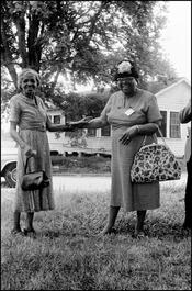 USA. Mississippi. 1963. Black residents shake the hands of passing...