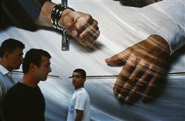 TURKEY. Istanbul. 2001. Soccer (football) fans outside a stadium....
