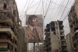 LEBANON. Beirut. July 19, 2006. Effigy of Imam Khomeini in a...