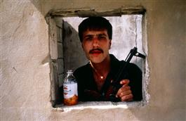 LEBANON. May, 1987. Maronite militia man on guard duty.