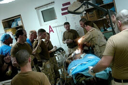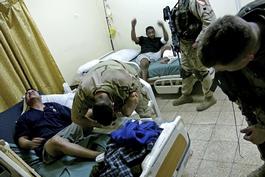 If it weren't for the war, we'd all be having a great time. - taken from the series M*A*S*H , 1970. First seen in the early 1970's at the height of anti-Vietnam feeling in America, the original series M*A*S*H followed a hapless US medical corps stationed out in the preceding Korean war. Here underlay a dark commentary throughout its comedy. As the US Military continue to fight onwards in Iraq, doctors, nurses and medics are working on the front lines to keep their casualties down. Magnum Photographer, Thomas Dworzak was with them, embedded with the 44th Medcoms 50th and 1150th Medical Companies...