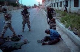 IRAQ. Tikrit. July, 2003. US troops conducting a raid in a village...