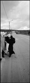 ISRAEL. Jerusalem. 2001. Catholic nuns at a crosswalk on their...