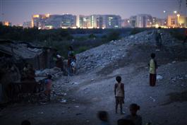 INDIA. Mumbai. 2006. From the edge of New Dharavi, children play...