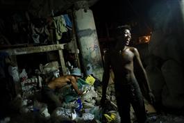 INDONESIA. Jakarta. 2007. Garbage recyclers underneath a highway...