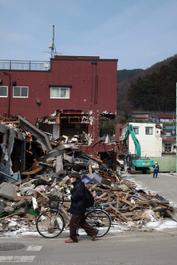 JAPAN. Miyako City, Iwate Prefecture. March 28th, 2011. Ruins...