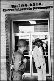 USA. Freedom Riders on stop during bus trip from Montgomery,...