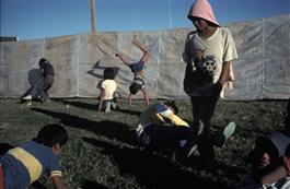 Brownsville. 1989. Central Americal refugees outside shelter....