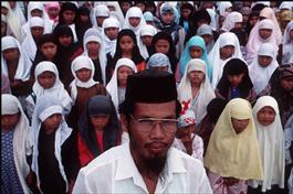 PHILIPPINES. Cotabato. 1995. A Muslim man with a carpet of Mecca...