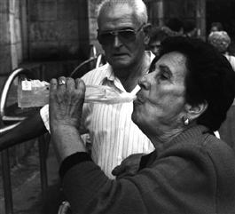 FRA.Lourdes Drinking holy water out of plastic bottle in the...