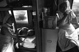 FRA.Lourdes Sick Italian children on train heading for Lourdes...