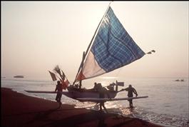 KUSAMBA: Traditional fishing boat, Ju Kung, on the beach.