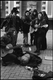 RUSSIA. Moscow. Young street musicians playing on the old Arbat....