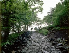 JAPAN. Mount Fuji. Going from 5th to 6th stage by horse. 1999....