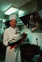 The cook of ABEILLE FLANDRE,with a model of the tugboat,one of...