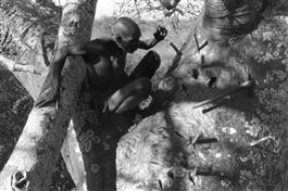 Tanzania. Dorobo tribe. Alabarari must first smoke out the bees...