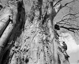 Tanzania. Dorobo tribe. In the search for honey many baobab trees...
