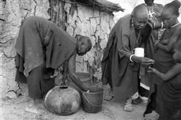 Tanzania. Dorobo tribe. Fresh honey is passed out and shared...