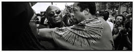 USA. New York City. 1999. A participant holds a flag at the Million...