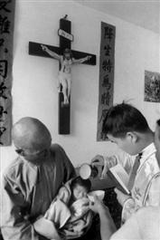 CHINA. Shaanxi Province. 1995. An 8-day-old baby is baptised....