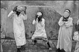TANZANIA. Zanzibar. Koranic students playfully hide their face...