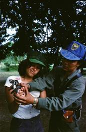 NICARAGUA. 1979. Woman instructor teaching marksmanship to woman...