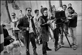 IRAN. Tehran. Film Director Manijeh HEKMAT shoots in the street...