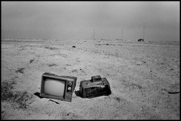 KUWAIT. Gulf War. 1991. Two tv sets in the middle of the desert....