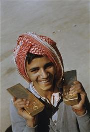 KUWAIT. The Oil Industy. A young Kuwaiti messenger boy carrying...