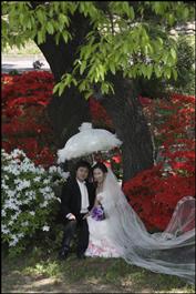 SOUTH KOREA. Daegu. A newly married couple poses for photographs...