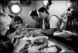 On board the Spanish trawler "Rowanlea". Fishermen's break.