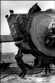 LAFARGE cement industry. Cleaning of the residues under the rolls....