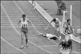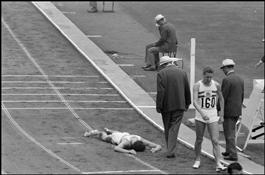 MEXICO. Mexico City. Olympic Games. Suffering athlete at the...