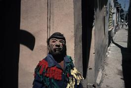 MEXICO. El Coyote. 1999. A boy with a mask at the Fiesta of San...