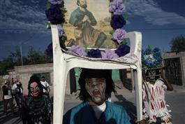 MEXICO. El Coyote. 1999. A masked devil and village children...
