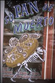 MEXICO. Bakers paint skeletons on their windows. Skeletons making...