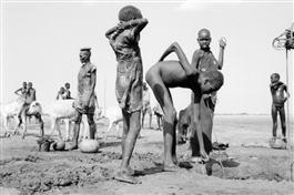 SUDAN. Duar. Dirty water is collected from holes dug in the dry...