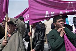 KYRGYZSTAN. Bishkek. March 2005. Opposition demonstrators during...