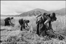 TIBET. 1999. A family finishing work for the day.