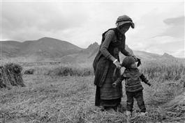 TIBET. 2000. Mother and daughter washing highland barley.